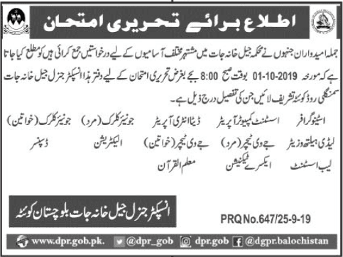 Location: Office of Inspector General jail khana jaat Samungli road Quetta