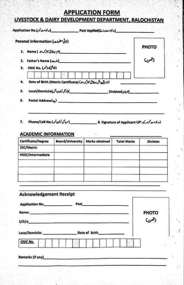 Download Department of livestock and Dairy development application form balochistan 28 Jan 2019.