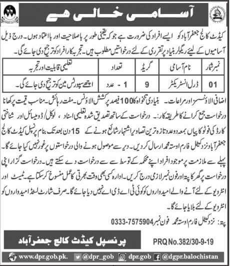Jobs in cadet college jaffarabad 2019