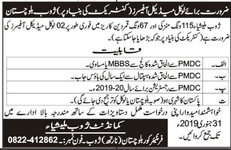 Jobs in Frontier Corps Balochistan Jan 2019