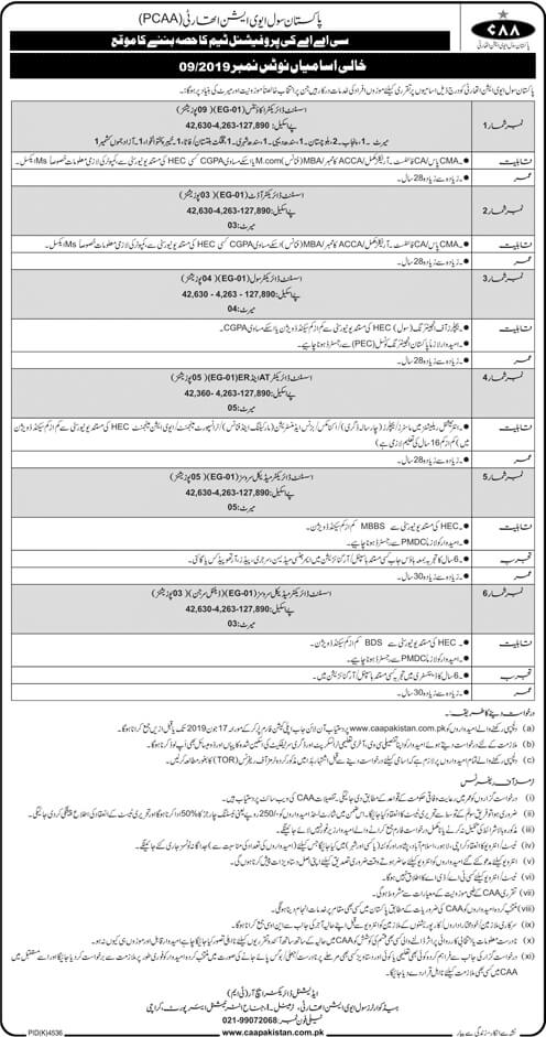 Jobs in Pakistan Civil Aviation Authority PCAA 2019