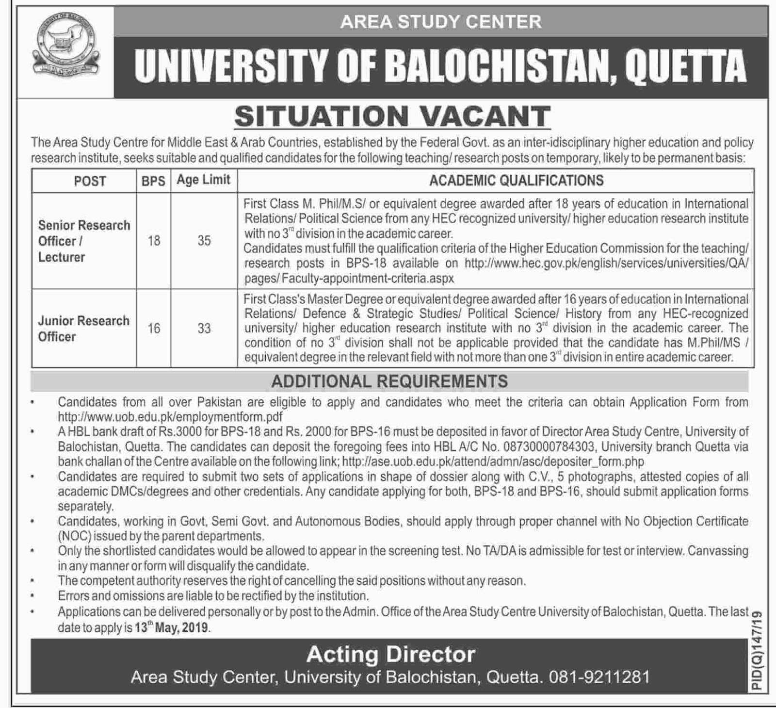 Jobs in University of Balochistan Quetta 2019