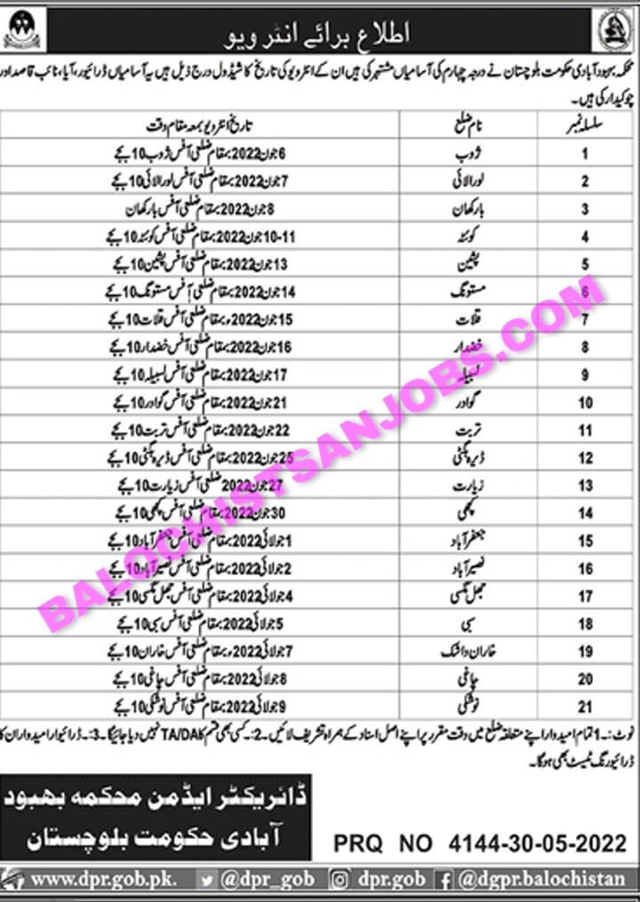 Population Welfare Balochistan Test /Interview has scheduled interview for their vacant post which was published in newspaper. Those candidates who applied for these vacant jobs are informed that their test/interviews will be conducted on the following schedule below.